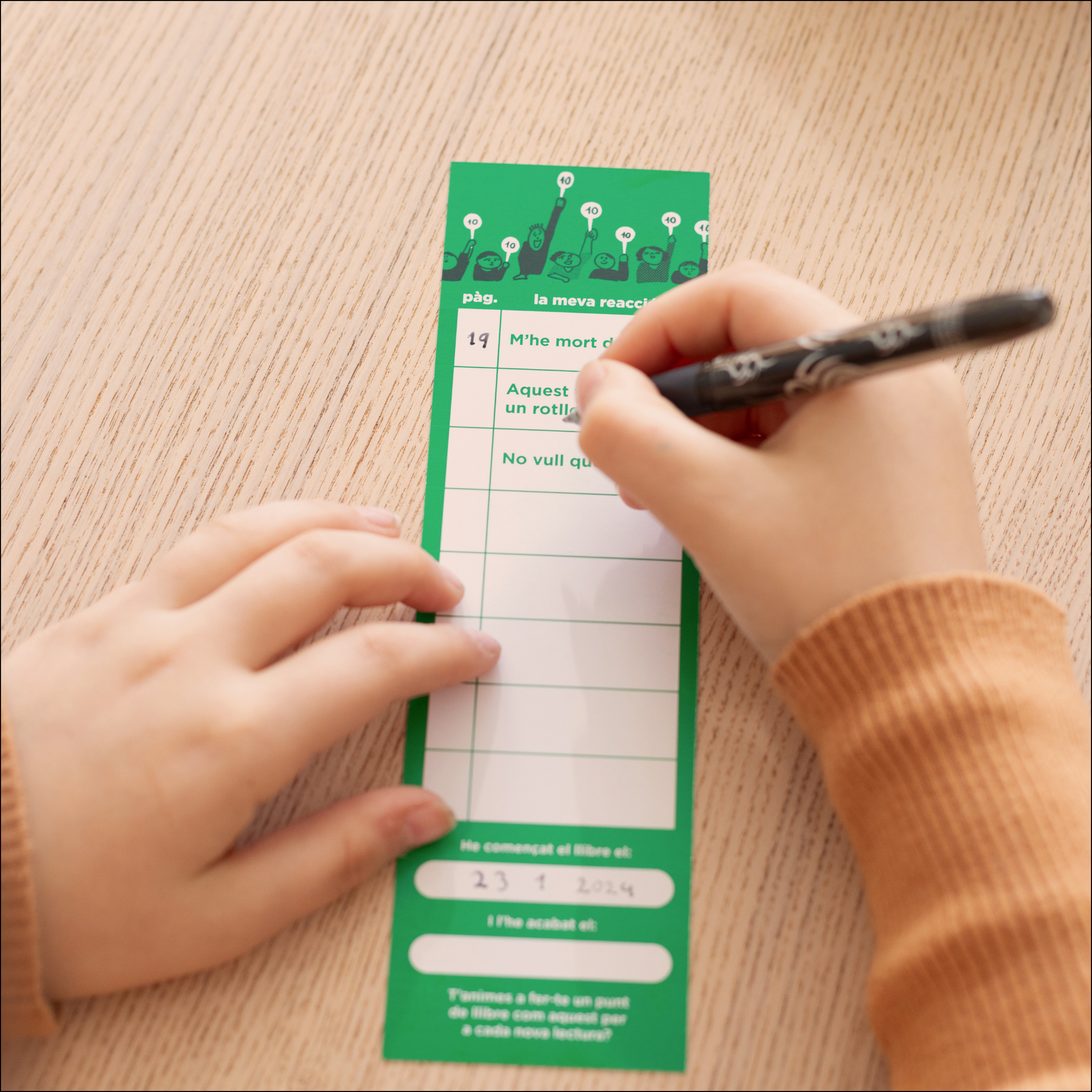 Un punt de llibre que funciona com un diari de lectura. Els infants/joves poden anar deixant testimoni de tot allò que els va passant amb el llibre i en quina pàgina, incloent-hi la data d'inici i de final en què van llegir-lo.